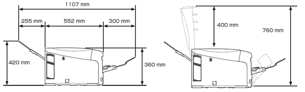 | 용지 배출 | 인쇄면 아래 : 최대 250 매 인쇄면 위 : 최대 100 매 |