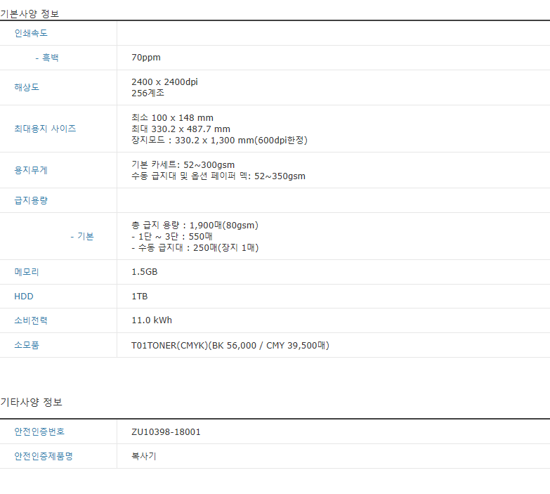 인쇄속도 70ppm