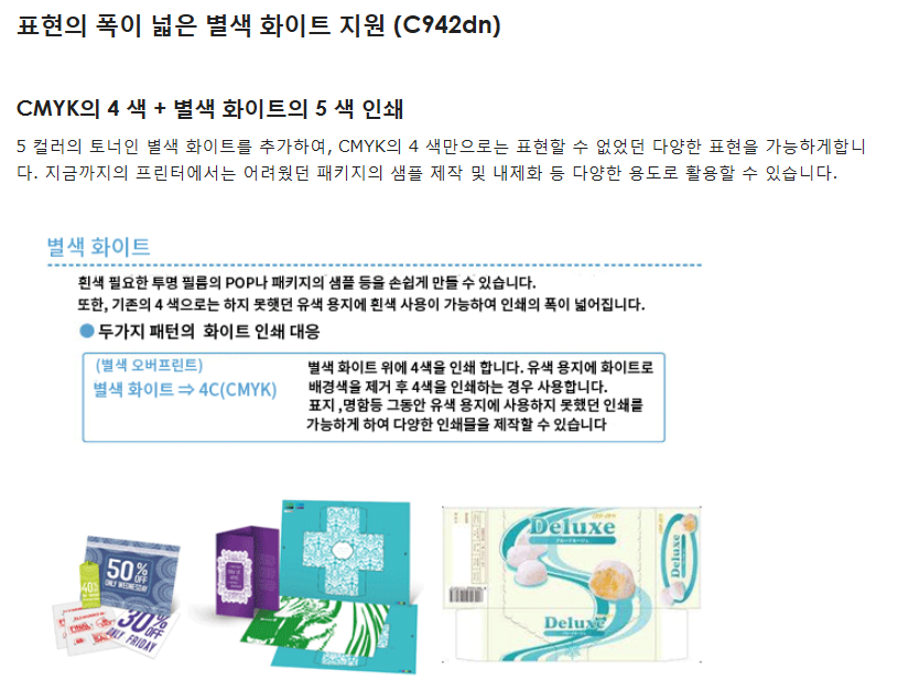 CMYK에 화이트 및 클리어의 5번째 별색 출력 가능!